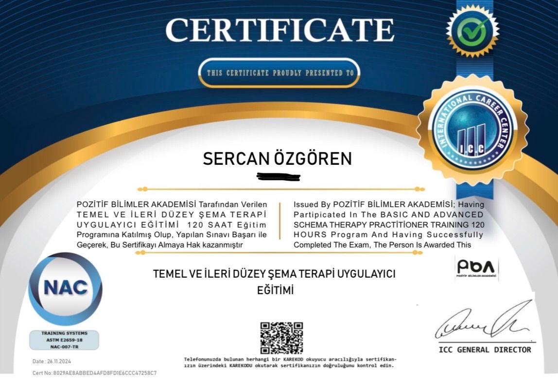 Psikoloji lisans eğitimimi İzmir Ekonomi Üniversitesi'nde tamamladım. Eğitim sürecimde Uzman Psikolog Umut Yılmaz'ın yanında EMDR ve Somatik Deneyimleme tekniklerine yönelik uygulamalı stajımı tamamladım. Ardından Fransız Lape Hastanesi'nde bipolar bozukluk ve şizofreni tanısı olan bireylerle çalışarak önemli klinik deneyimler edindim. Ayrıca aile danışmanlığı, çift danışmanlığı ve Kabul ve Kararlılık Terapisi (ACT) yaklaşımlarına dayalı kapsamlı bir eğitim sürecinden geçtim.